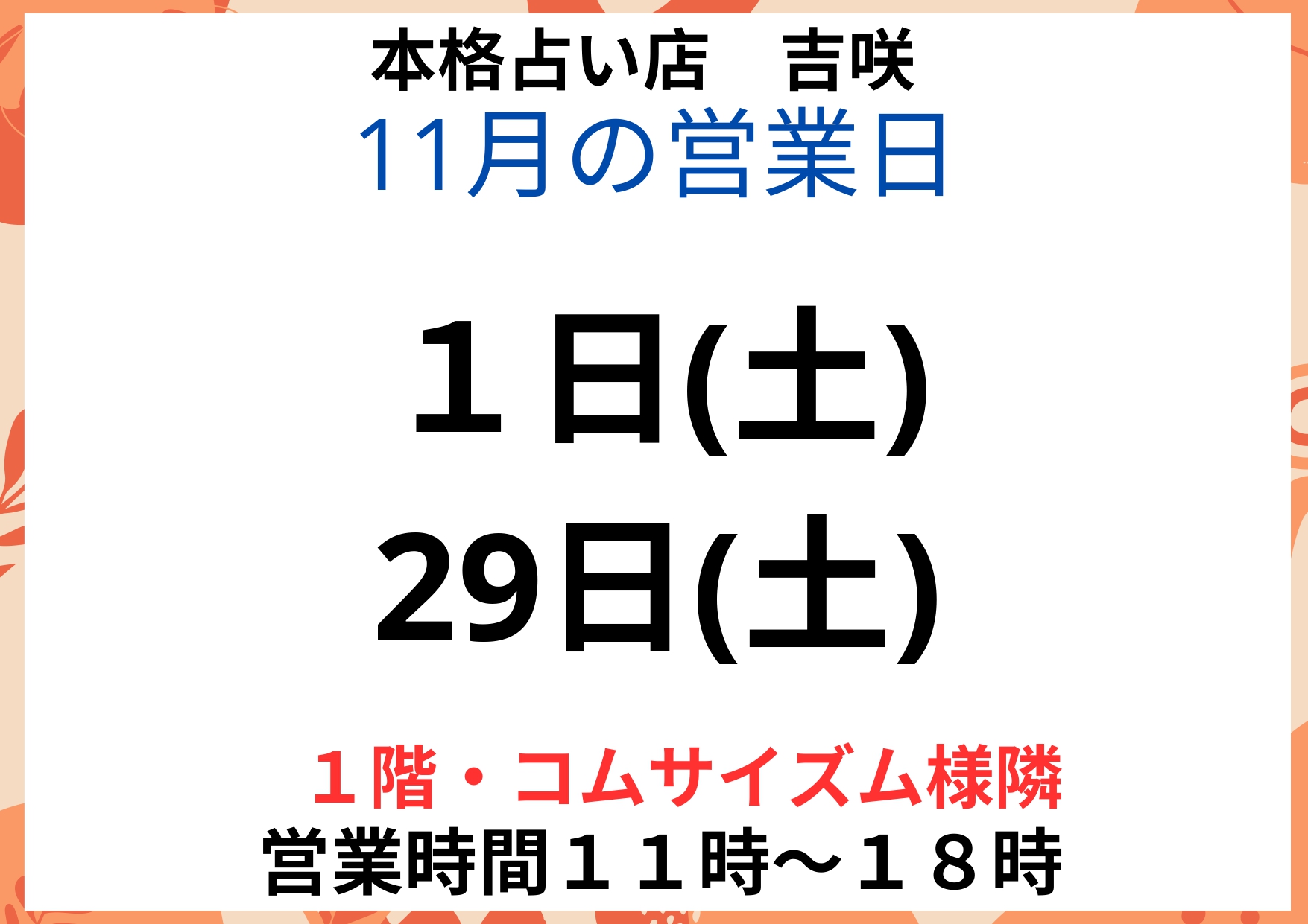 9月7日(日)、14日(日)、 15日(月)㊗⇒予定していましたが作家さんの都合によりお休みさせていただきます。 27日(土) 10月12日(日)