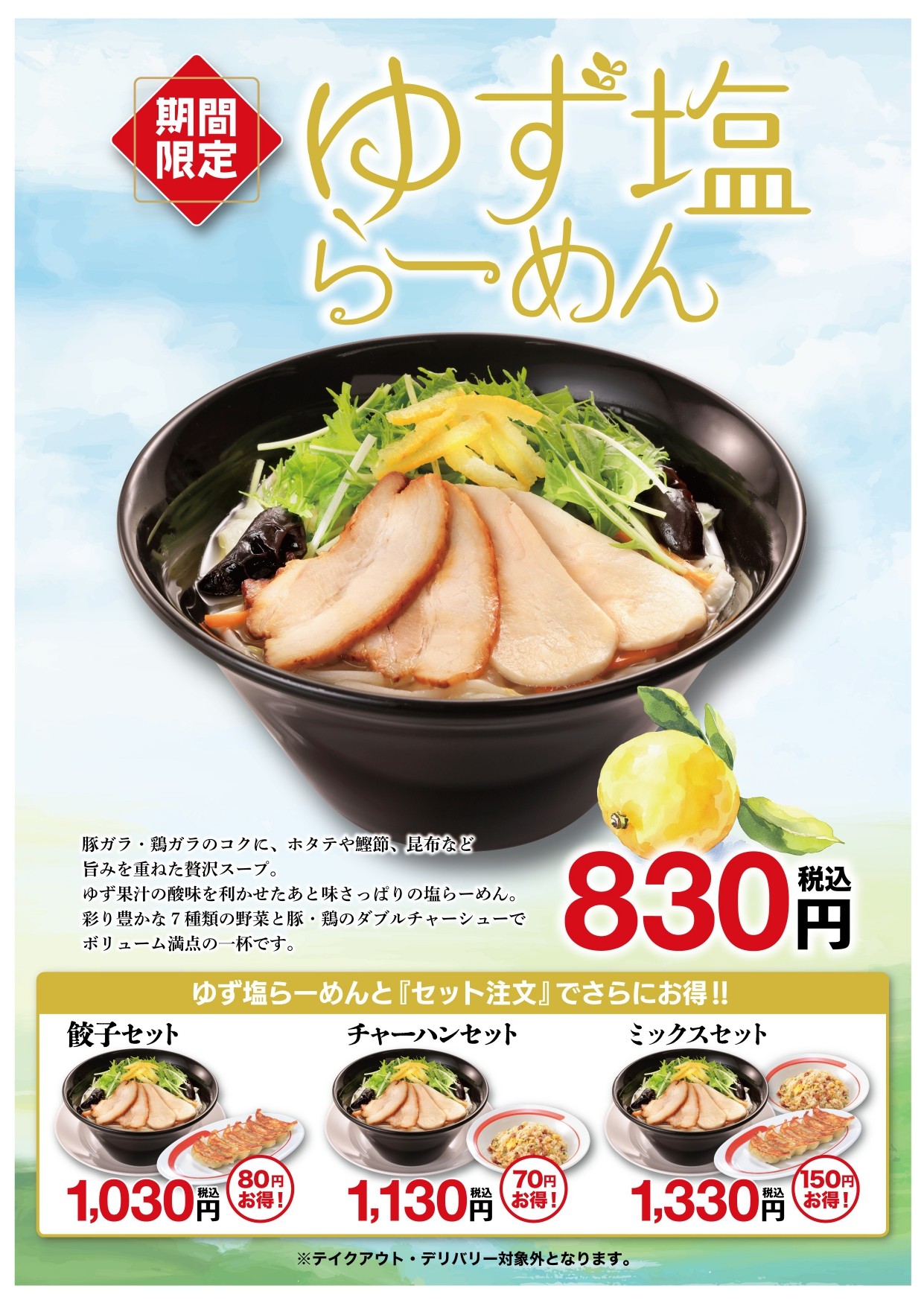2/2(月)販売開始! ゆず塩らーめん
