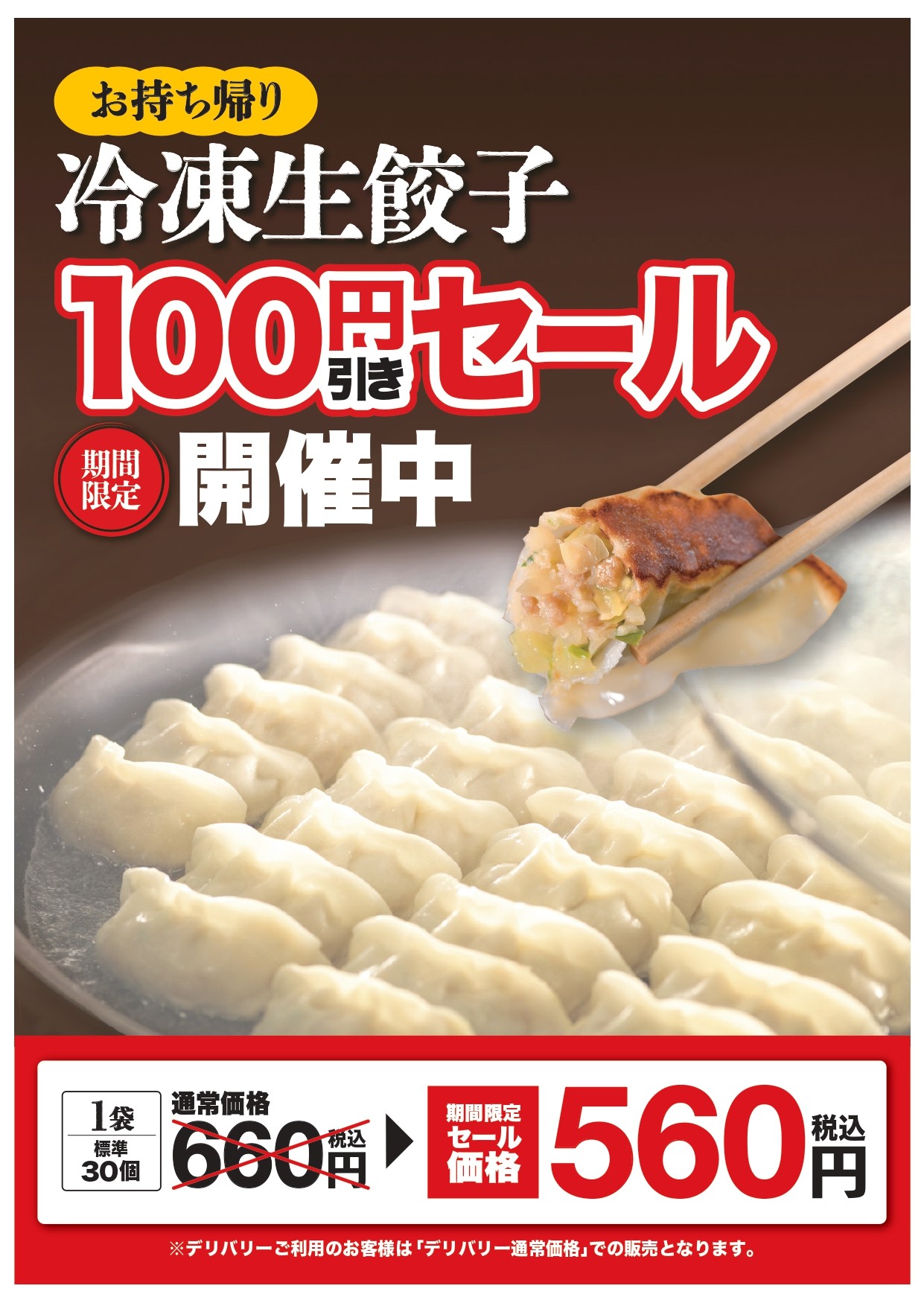 ■味噌とんこつらーめん 丁寧に炊き出した濃厚な豚骨スープに、風味豊かな味噌を 合わせた一杯。背油のまろやかな甘みがスープの コクをさらに引き立て、チャーシュー5枚をトッピングし 食べ応え抜群! 同日から12/8(月)まで、冷凍生ギョーザ100円引きセールを開催します 1袋30個入り 通常価格660円⇒セール価格560円 この機会にぜひお買い求めください